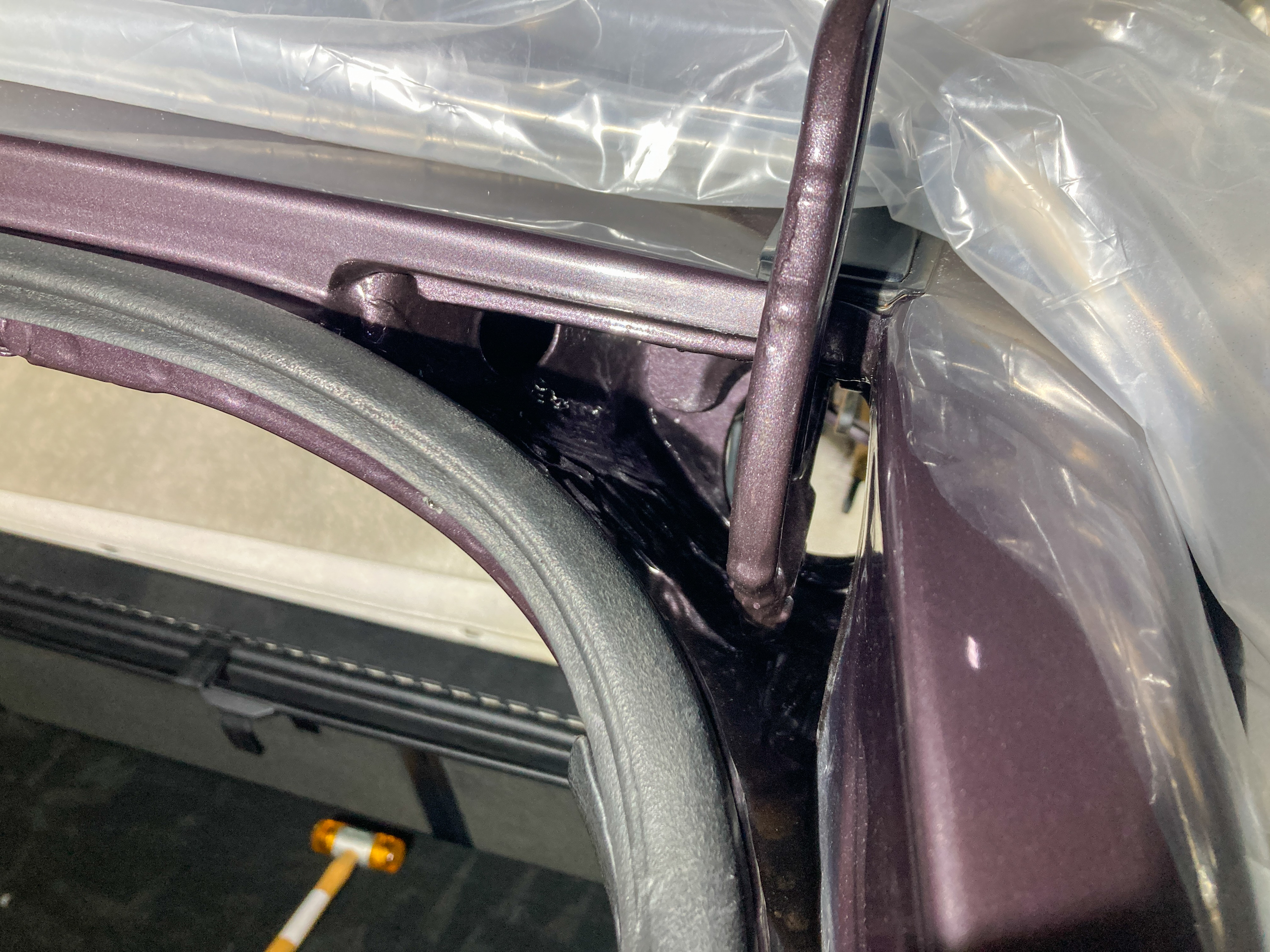 Auch der Rest des Schachts hat nur einen Hauch von Lackschicht drauf, da man an diese Stellen beim Lackieren nur sehr schlecht drankommt. Da man bei der Produktion das Auto sogar mit bereits montierter Heckklappe lackiert hat, ist davon auszugehen, dass diese Bereiche gar nicht ausreichend lackiert worden sein konnten.