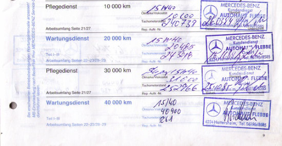 Laut Wartungsheft durchgeführter Wartungsdienst. Das Datum ist nur eine Schätzung, da es im Wartungsheft nicht angegeben wurde.